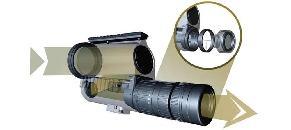 A nagy hatótávolságú spektív kifinomult szemlencse-rendszerrel rendelkezik, hogy minden képsík tökéletesen illeszkedjen a célponthoz, és így borotvaéles képet adjon. Az élességállító a szemlencse közepén található, és az adott távolsághoz tartozó optimális képélesség beállítására szolgál. A felhasználó a kicsavarható szemkagylóknak köszönhetően pontosan beállíthatja a szemtávolságát a szemlencséhez képest.