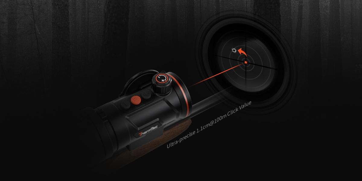 A 1.1 cm / 100 m klikkérték lehetővé teszi a finomhangolást a maximális pontosság és sikeres vadászat érdekében.