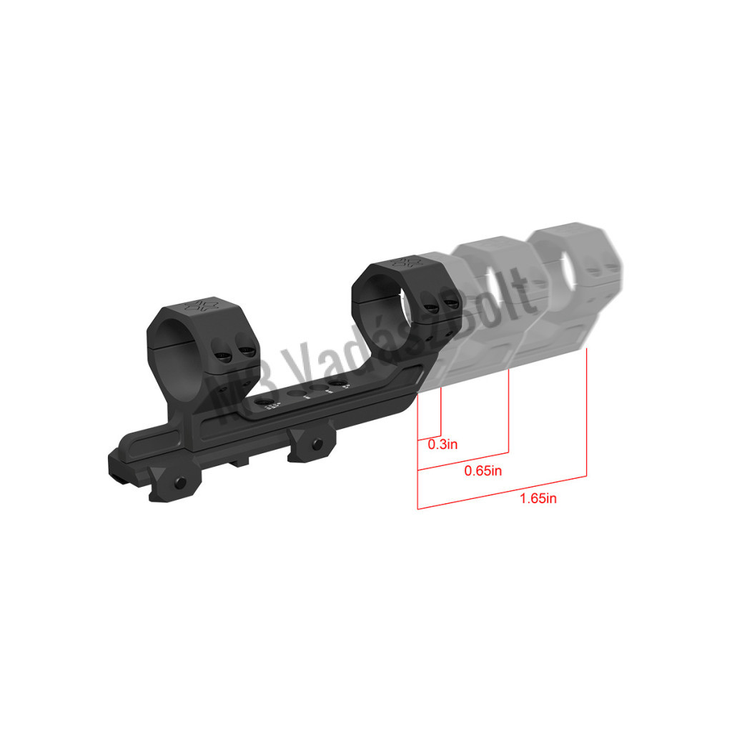 A szerelék 0,3", 0,65" és 1,65" előrenyúlási beállítási lehetőséget kínál, így bármilyen távcsőhöz és lövészstílushoz tökéletesen igazítható.