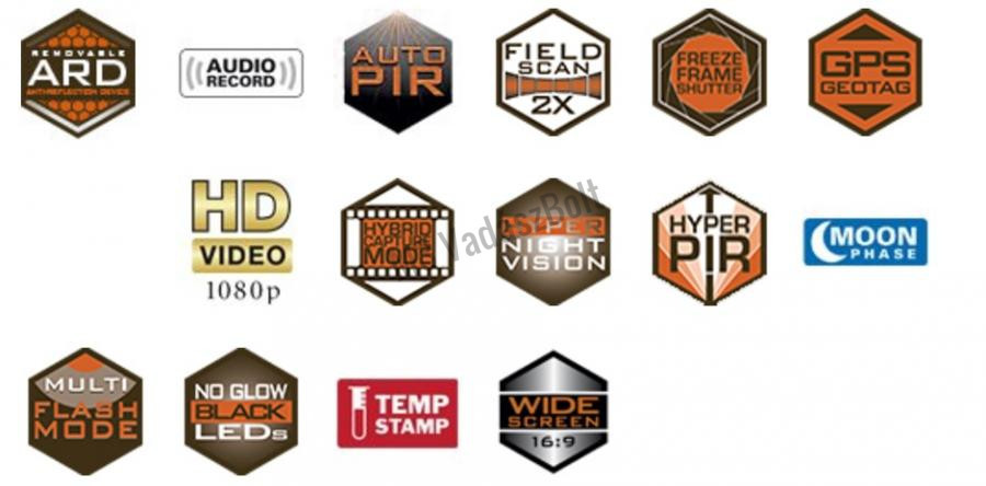 Sensor Resolution: 3, 8, 14MPImages Resolution: True 3MP sensor with 8MP and 14MP interpolationFlash: 48 No-Glow Black LEDsFlash Range (ft. / m): 80 ft. / 25mBacklit LCD Display: B&W Text LCDExposure: AutoWhite Balance: AutoColor: CamoBattery Type: AA (4-8)Battery Life: Up to 1 yearVideo Resolution: 1920 x 1080pNight Vision Infrared Imaging: YesInfrared Sensor Range (ft. / m): 80 ft. / 25mAudio Record: YesMulti Flash Mode: YesHyper Night Vision: YesAuto PIR: YesField Scan 2x: Yes